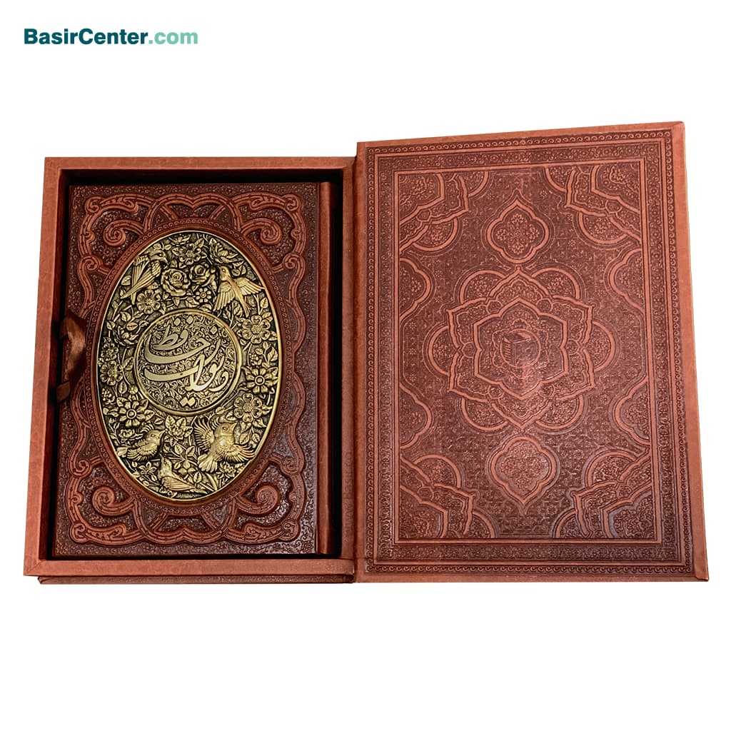 کتاب نفیس حافظ بصیر با فالنامه همراه با قاب کشویی چرمی پلاک دار