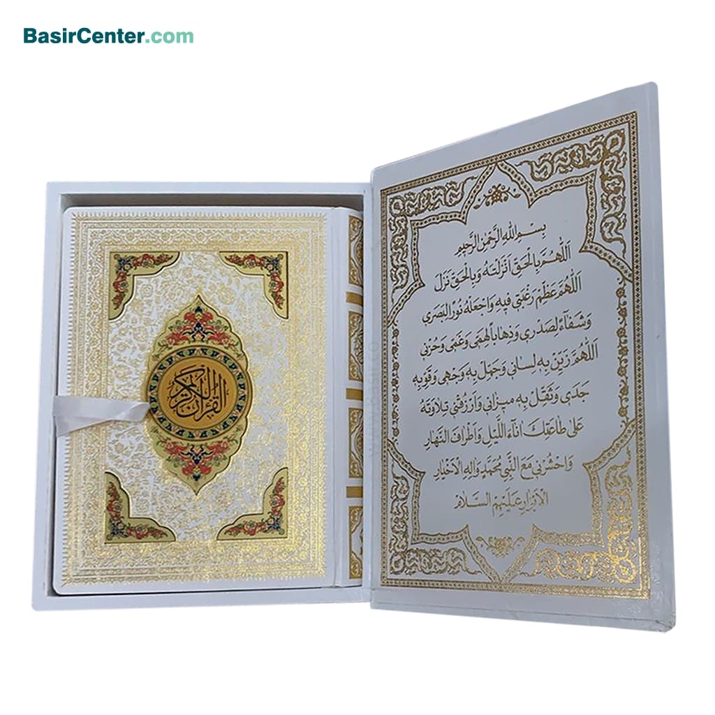 کتاب قرآن نفیس پلاک رنگی بصیر همراه با جعبه (قرآن عروس)