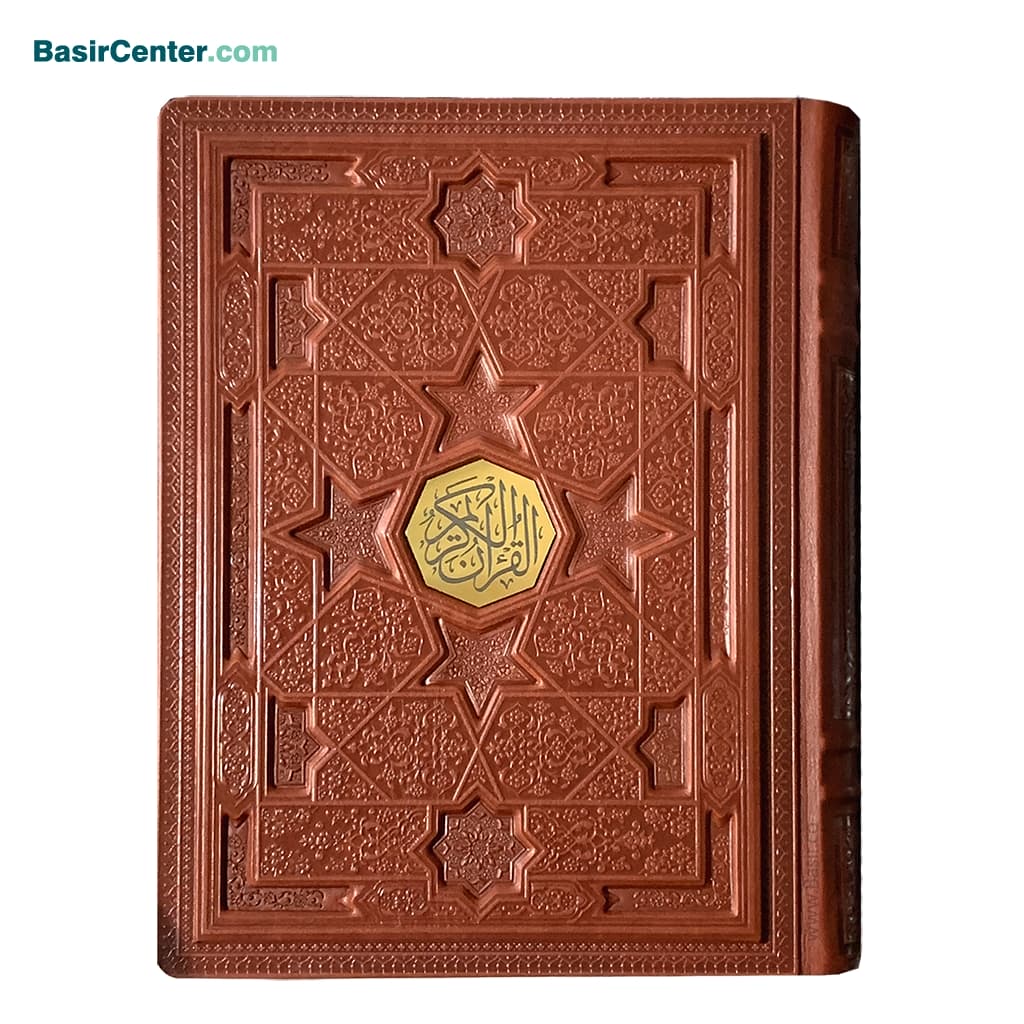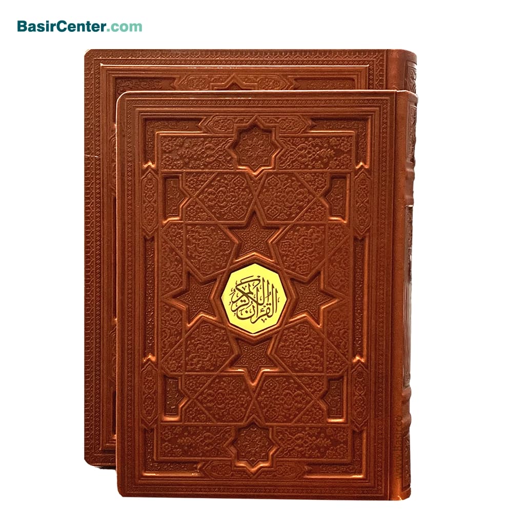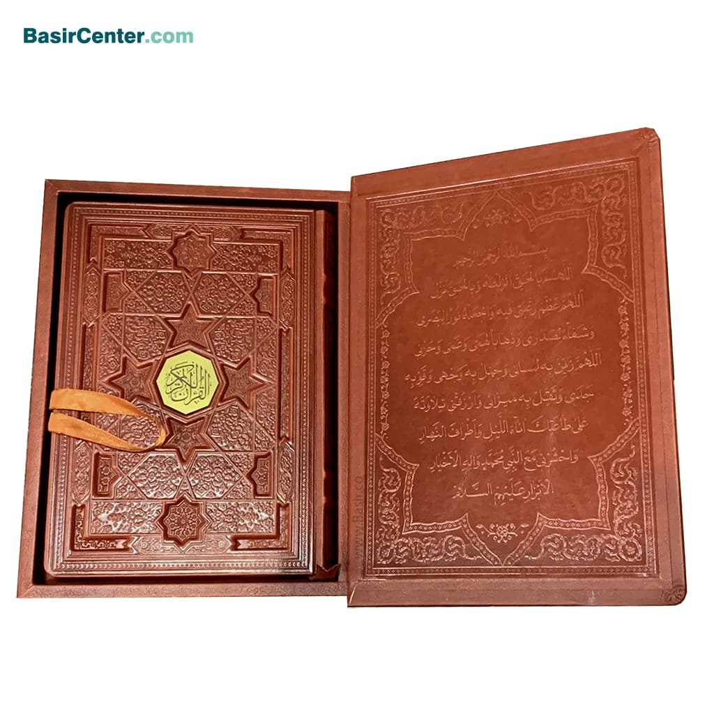 کتاب قرآن بسیار نفیس و معطر بدون ترجمه بصیر همراه با قاب بازشو (جعبه صندوقی) با جلد و قاب چرمی طرح برجسته بسیار زیبا همراه با پلاک طلایی و چاپ کاملا رنگی با تذهیب چشم نواز و زیبا بر روی بهترین کاغذ معطر طرح ابر و باد لبه طلا با کیفیت عالی، توسط انتشارات نوین بصیر به صورت عمده تولید گردیده و در داخل و خارج از کشور مورد استقبال گسترده قرار گرفته است.