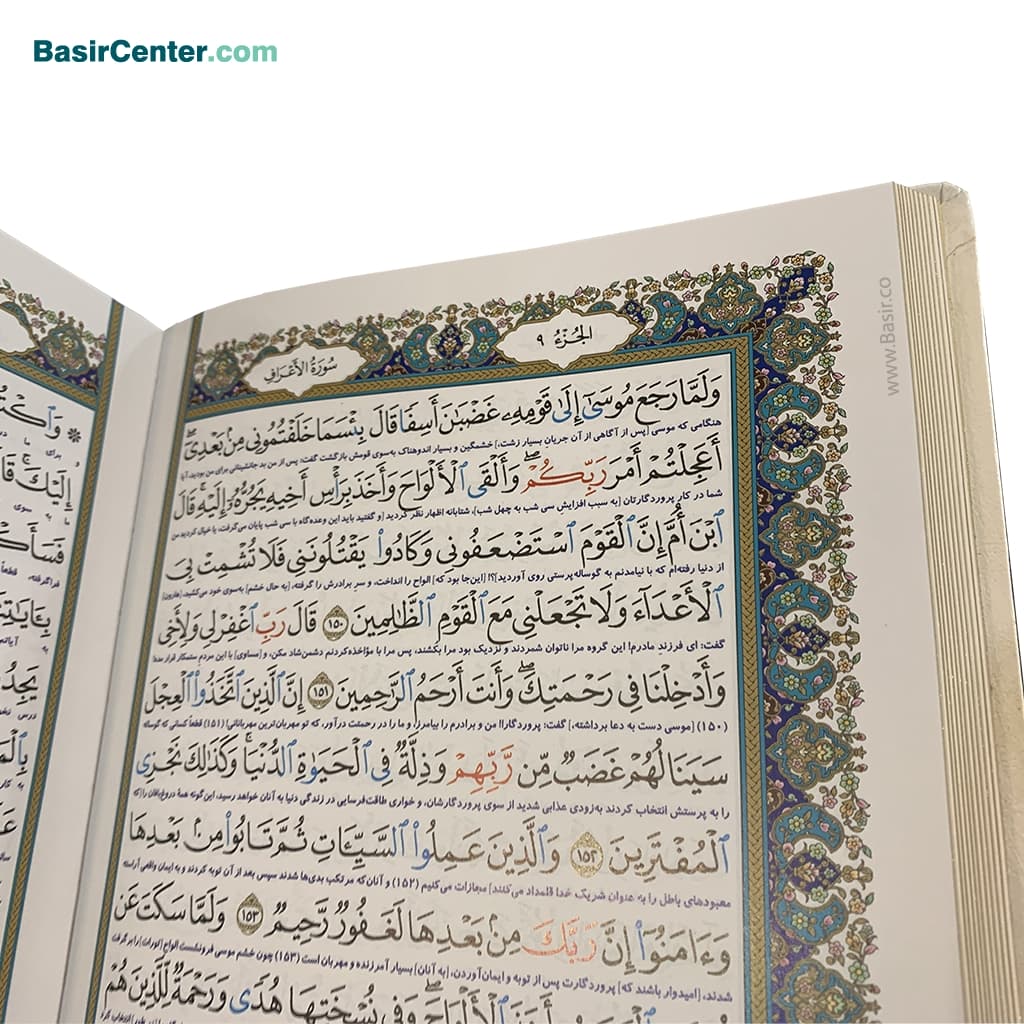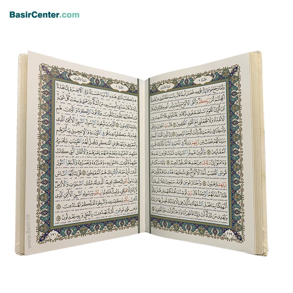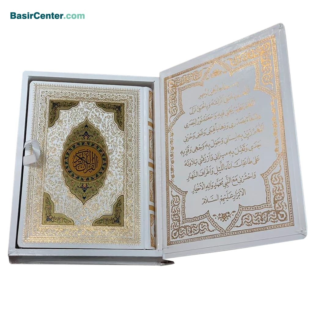 کتاب قرآن نفیس کاغذ گلاسه بصیر (قرآن عروس) بسیار زیبا با طرح و کیفیتی فوقالعاده در قطع وزیری با کاغذ گلاسه لبه طلایی اصل و جلد و قاب بازشو سفید رنگ تلفیق برش لیزر همراه با پلاک طلایی آینه ای و طلاکوب با کیفیت بسیار عالی و تقاضای بالا …