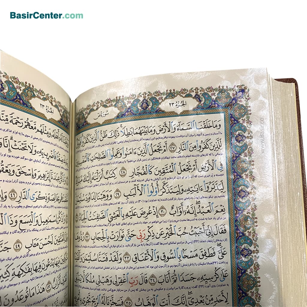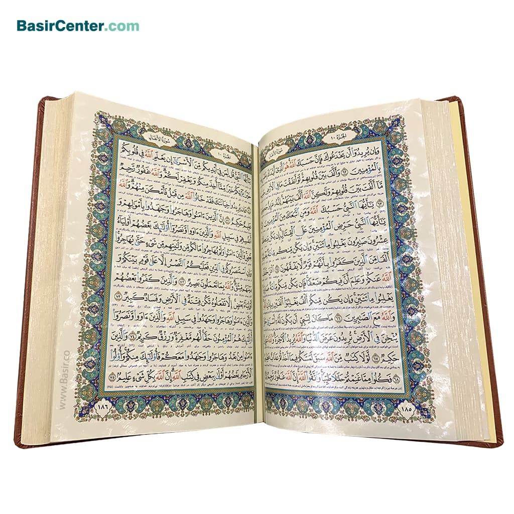 کتاب قرآن نفیس و معطر لیزری بصیر همراه با قاب بازشو