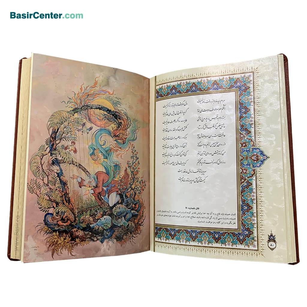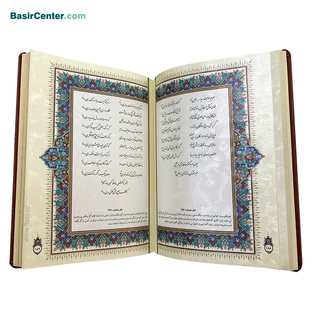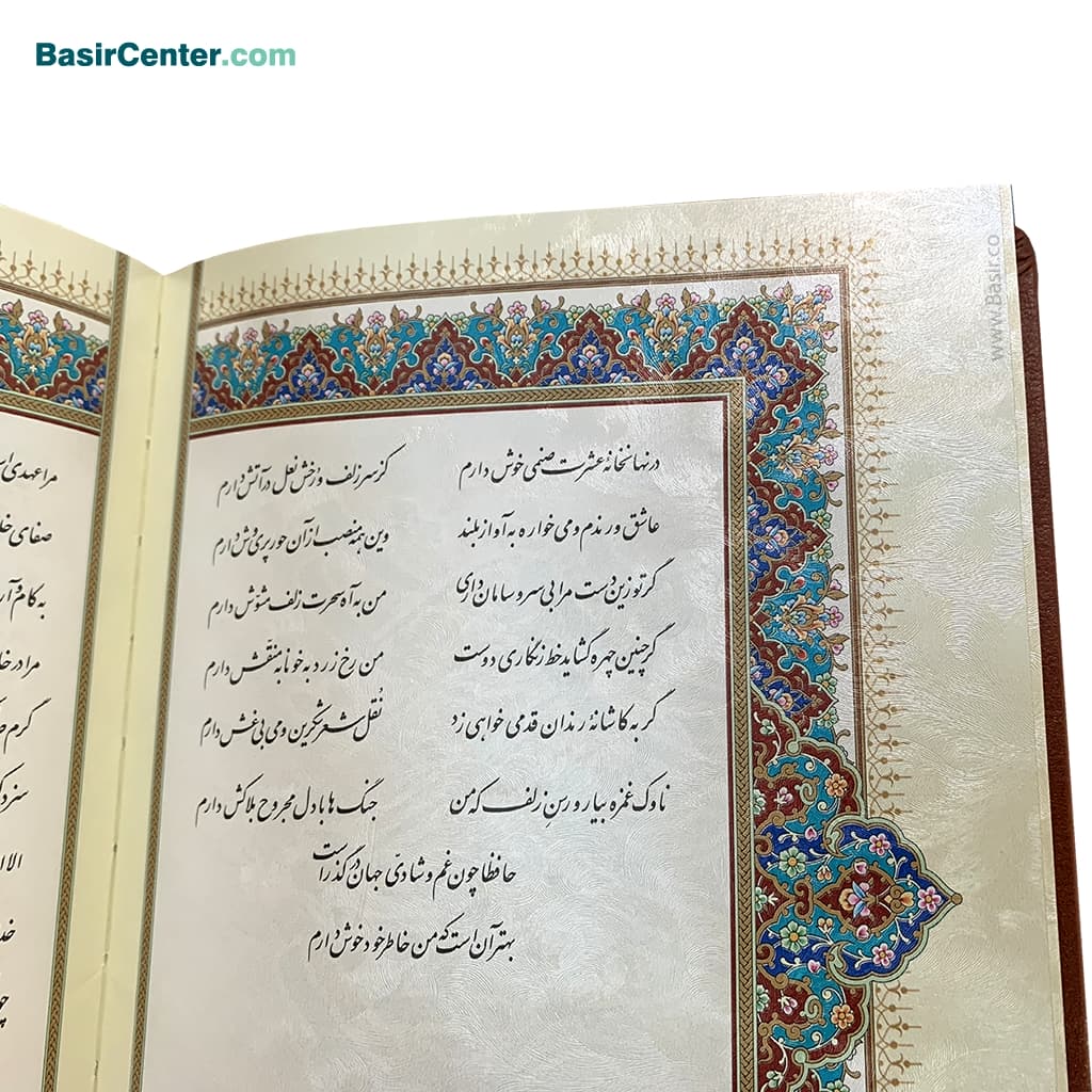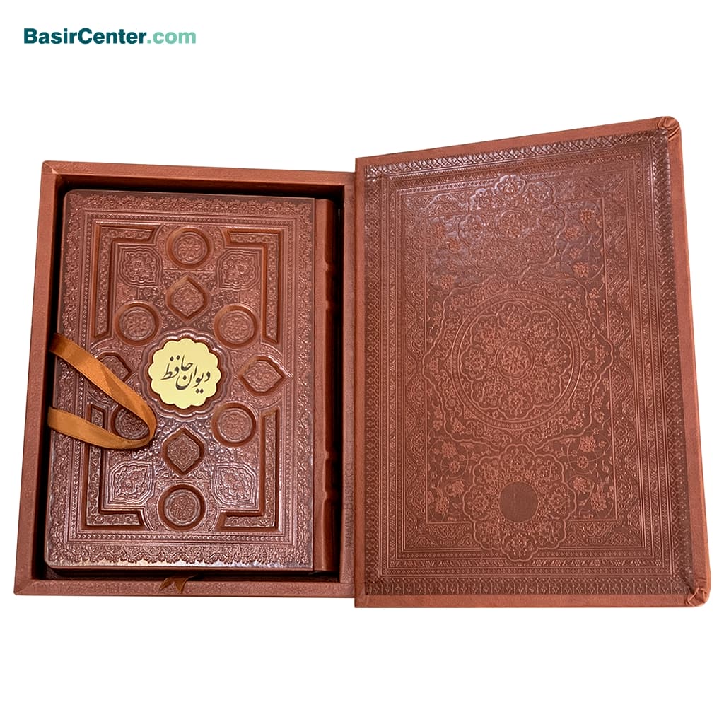 کتاب نفیس و معطر دیوان حافظ بصیر همراه با جلد و جعبه (قاب بازشو) چرمی طرح برجسته بسیار زیبا